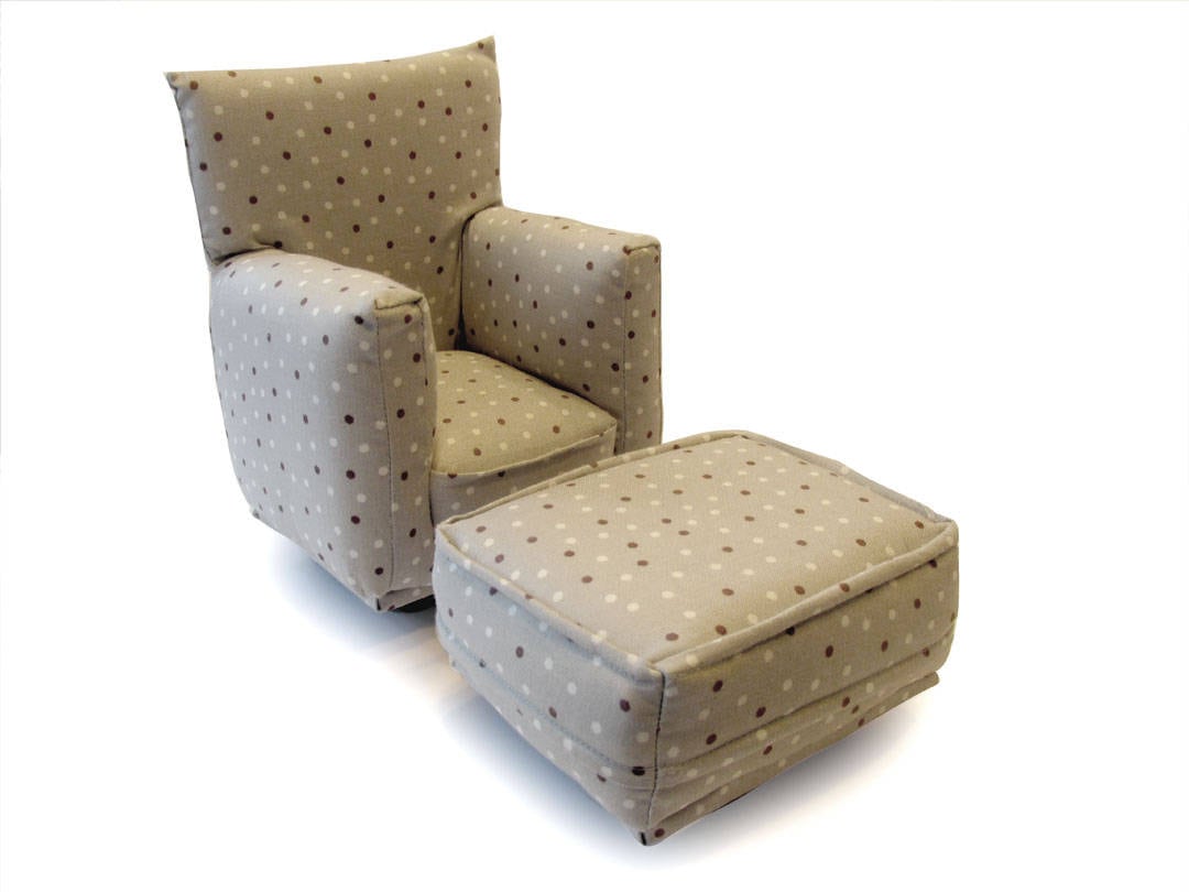 This Barbie doll Chair & Ottoman furniture play set will provide years of usage for your special child. This set is handmade with sturdy wood frame construction. The Chair and Ottoman are padded and covered with a Gray with White and Brown dotted pattern fabric. The covering for the furniture is machine sewn for added durability. Shipping weight: 2-lbs. Dimensions: 4" x 4-1/2" x 8" high.