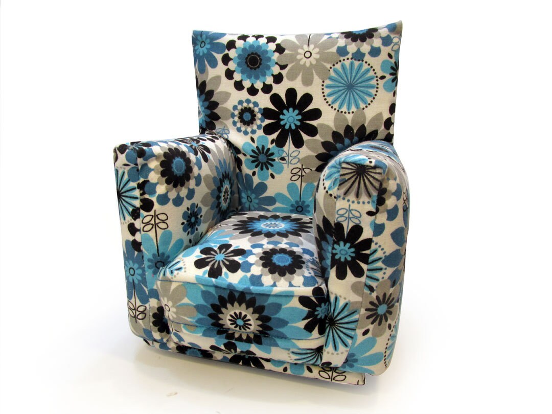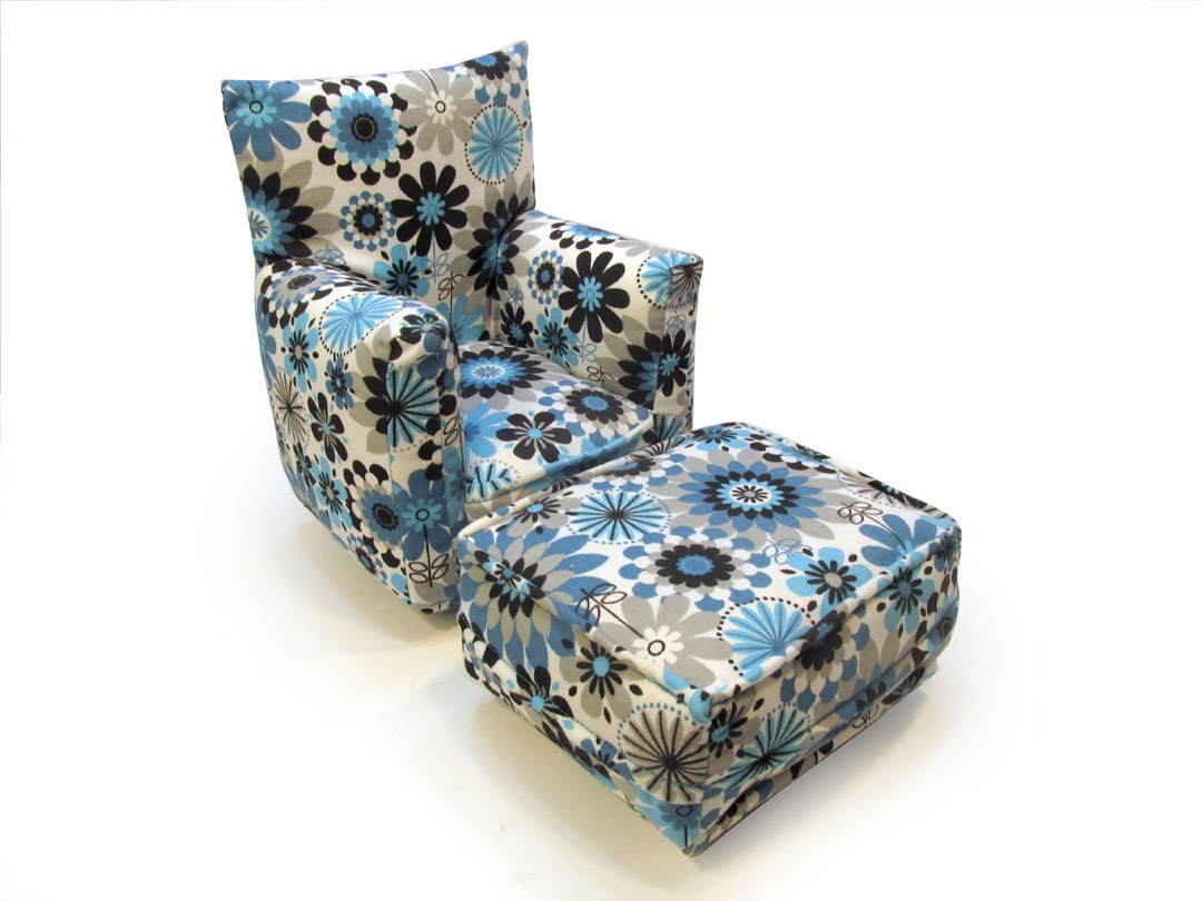 This set is handmade with sturdy wood frame construction. The Chair and Ottoman are padded and covered with a Teal, Gray and White flower print fabric. The covering for the furniture is machine sewn for added durability. This Barbie doll Chair & Ottoman furniture play set will provide years of usage for your special child.