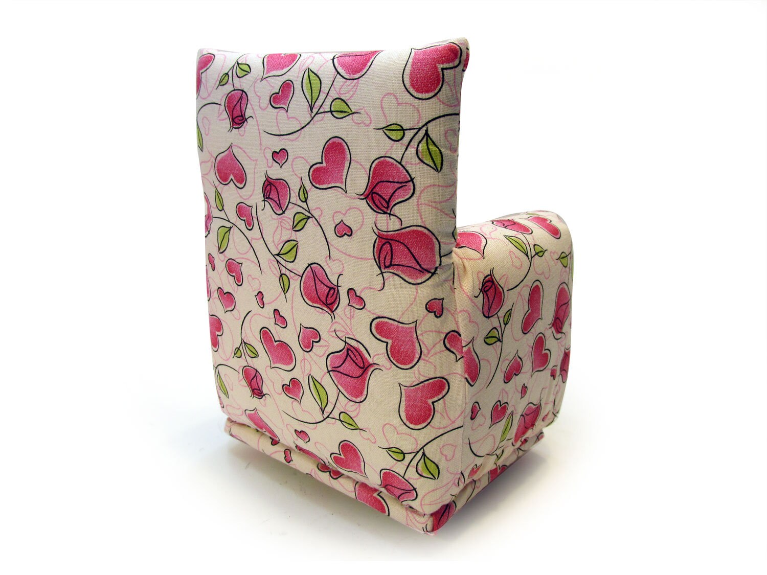This Barbie doll furniture play set will provide years of usage for your special child. This set is handmade with sturdy wood frame construction. The two chairs are padded and covered with a White and Pink/Green flower print fabric includes two solid Green pillows. The covering for the furniture is machine sewn for added durability.