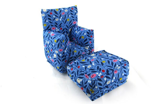 This set is handmade with sturdy wood frame construction. The Chair and Ottoman are padded and covered with a Medium Blue with Dark Blue and White flower print fabric. This Barbie doll Chair & Ottoman furniture play set will provide years of usage for your special child.